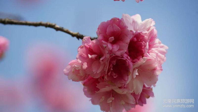 步入田园镇德䘵寨樱花大道,樱花竞相绽放、如云似霞。盛开的樱花五六朵簇拥成团,花瓣薄如蝉翼,边缘微卷,阳光下透若琉璃,花心晕着淡淡的胭脂色。粉白色的樱花在湛蓝的天空映衬下,入镜即成画卷,每一张都是限量版照片。樱花盛开,不仅引得蜜蜂穿梭花间忙碌采蜜,也吸引了不少市民与游客前来赏景。他们身着传统汉服穿行花下,衣袂翩跹,与烂漫花海相映成趣。“这几天昌宁的樱花大道、茶韵公园各种花都开了,特别的美丽,今天我和几个朋友一起来这里拍照打卡,希望把我们昌宁最美好的一面展示给各界的朋友,也欢迎各界的朋友到我们昌宁来拍照打卡。”游客王丽雪说。