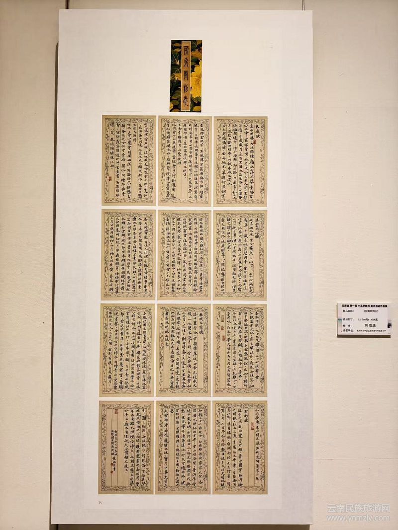 本次展览共收到来自全省16个州(市)、92个县(市、区)中小学教师的2429件投稿作品,经严格评审,最终遴选出272件优秀作品参展,其中美术作品151件,书法作品116件。昆明市五华区书画家协会副秘书长叶瑞康的书法作品《云南风物志》成功入选。
