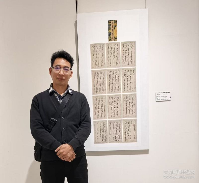 叶瑞康的参展作品《云南风物志》以小楷创作,内容聚焦云南生态文明建设与民族团结主题,融合了其自撰的《春城赋》《滇云同心赋》《春城生态赋》《云南赋》四篇佳作。作品取法赵孟頫及魏晋书风,风格俊秀沉稳、端庄挺拔,兼具灵动与静气,展现了作者在传承中华优秀传统文化、践行美育使命中的艺术追求与责任担当。
