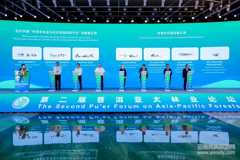 论坛以“加强森林管理,促进人与自然和谐共生”为主题,旨在持续巩固并扩大亚太区域林业交流与务实合作,加强森林可持续经营,积极服务《联合国2030年可持续发展议程》及全球发展倡议。本次论坛的召开,是落实习近平主席三次考察云南重要指示精神,争当全国生态文明建设排头兵、建设面向南亚东南亚辐射中心的一项具体举措。亚太森林组织秘书长王春峰主持开幕式。来自亚太地区20余个经济体的林业主管部门、国际组织、林业科研院所、林业院校及企业代表共300余人应邀参加论坛,规模超过2023年的首届。开幕式上,国家林业和草原局、云南省人民政府、缅甸自然资源与环境保护部、亚太森林组织、普洱市相关负责人分别致辞,强调森林作为陆地生态系统的主体,在应对气候变化、维护生物多样性、促进绿色发展等方面发挥着不可替代的作用,呼吁亚太区域经济体加强合作,聚焦机制创新,探索可持续和包容的林业发展新路径,通过可持续森林管理实现人与自然和谐共生。缅甸自然资源与环境保护部常务秘书长拉貌登,赞赏肯定首届论坛在推动亚太区域林业信息共享等方面取得的丰硕成果,期待进一步凝聚共识,加速落实可持续发展目标,为亚太区域林业可持续发展提供新动能。开幕式期间,云南省林业和草原局与老挝人民民主共和国乌多姆赛省、丰沙里省、南塔省农业和环境厅分别签署林草合作框架备忘录。普洱市林业产业协会、普洱上海科技服务中心与老挝相关企业签署合作共建“中老农林业与农村发展科研平台”谅解备忘录。