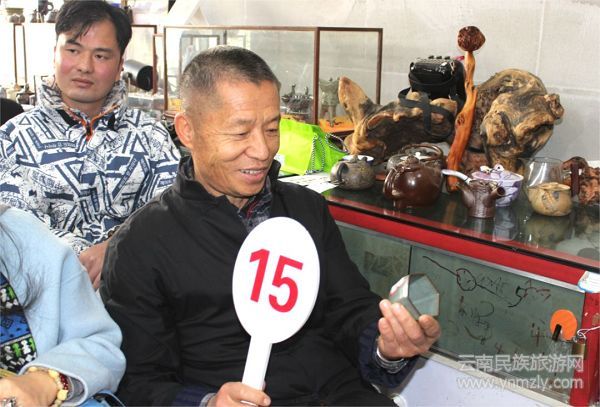 拍卖环节是本次联谊会的核心内容。古玩艺术品方面,象征“六方来财”的南宋紫口铁足六方茶杯首先开拍,最终以260元的价格被15号胡先生成功拍得。