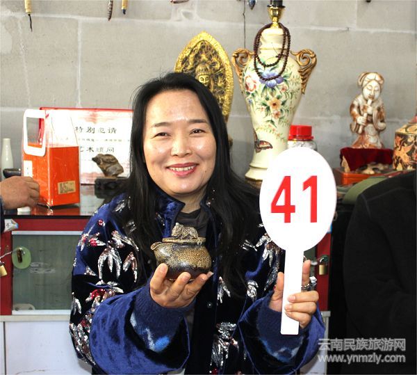 寓意财源广进的民国铜黄财神像以160元被36号女士收入囊中。