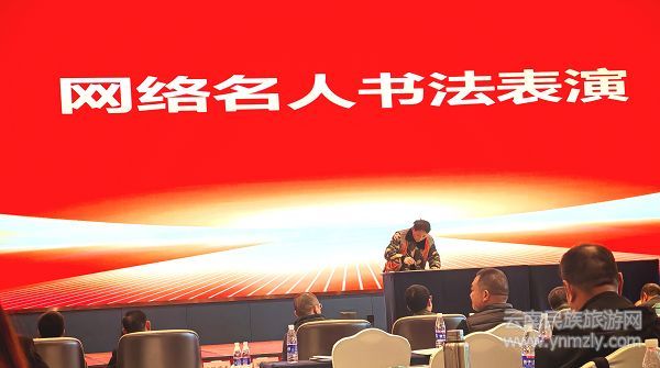 会上,网络名人书法表演赢得与会代表们的热烈掌声。