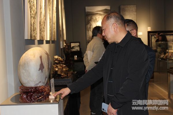 开幕式现场气氛热烈。云南省观赏石协会会长、石间艺术馆馆长陆林友首先致欢迎辞。他对莅临现场的各位嘉宾表示诚挚欢迎,并深刻阐述了石文化在当下的传承创新、跨界融合的重要性以及产业未来的广阔前景。