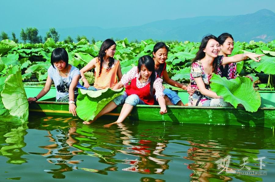 陆良最大的内陆湖泊,离陆良县城约10公里,现有水域面积5000多亩,四周良田万顷,村宇环绕,交通便利,区位极佳。夏日荷叶连田,芙蓉映碧鱼跃鸟飞;秋天稻香千里,遍地黄金,好一派江南水乡之美境。每值仲夏都有上万游客络绎不绝到此享受“稻花香里说丰年、蛙声伴乐赏芙蓉、醉倒游客一满塘”的意境。