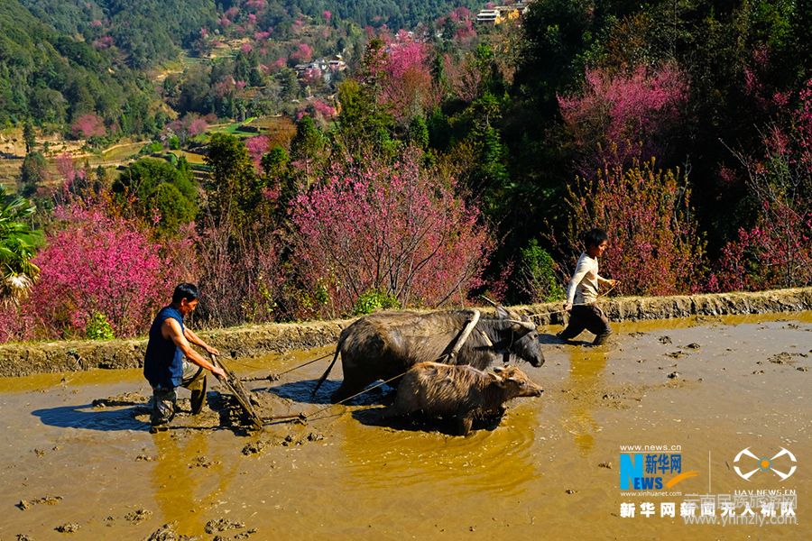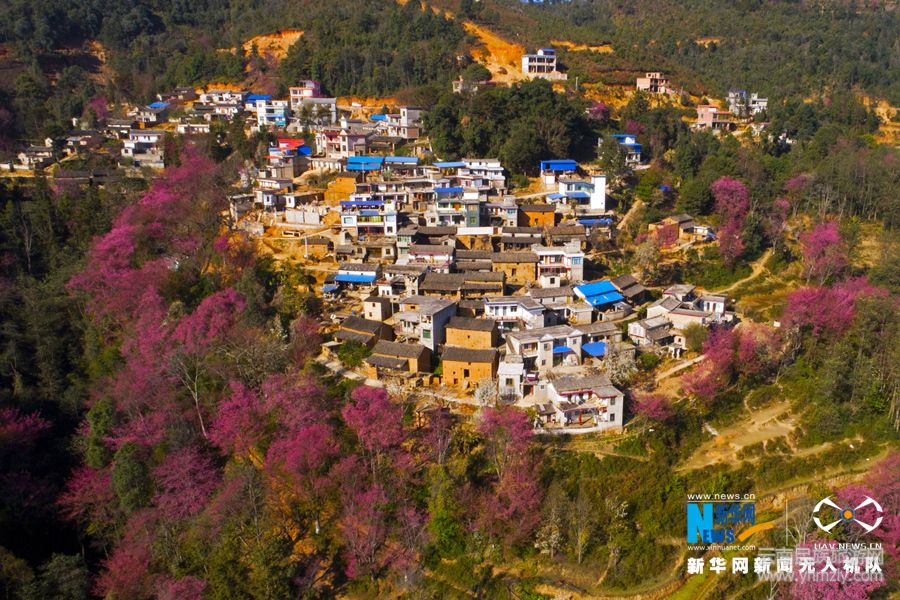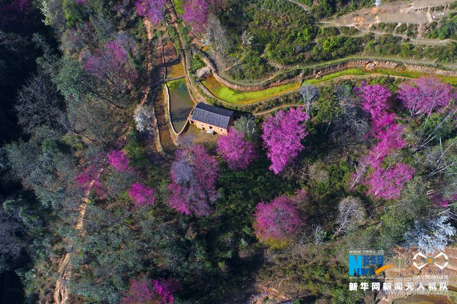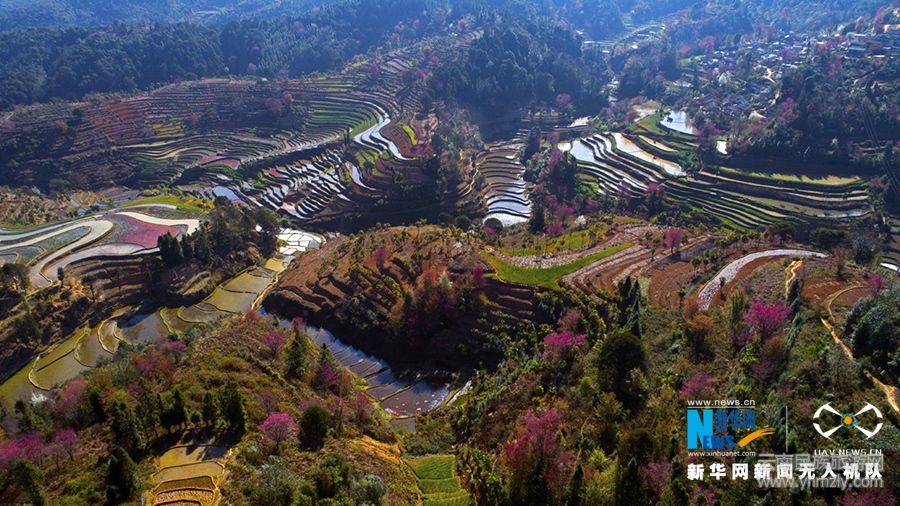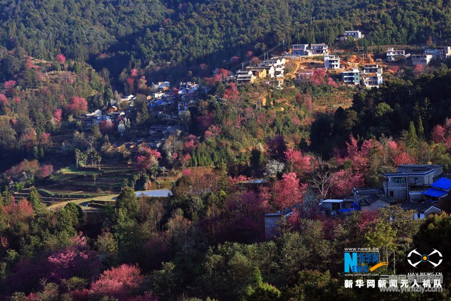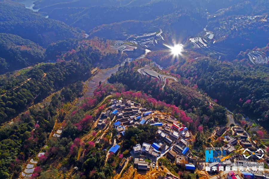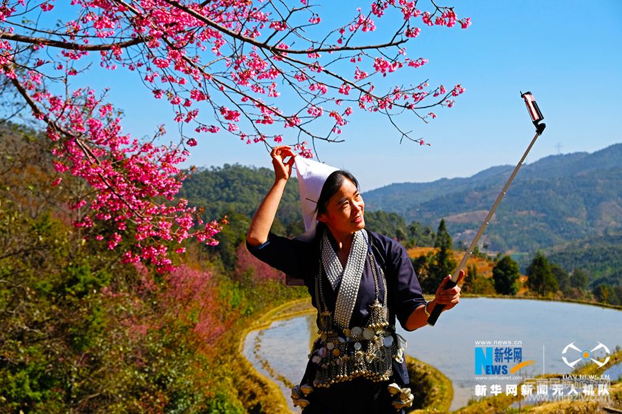 2月下旬以来,哈尼族支系奕车人居住的云南省红河县大羊街乡与车古乡交界的山谷里,樱花相继盛开,与梯田、村寨相映成趣,将大地装扮成了一幅壮丽的画卷,吸引了无数游客前往观赏。(新华网发 张洪科摄)