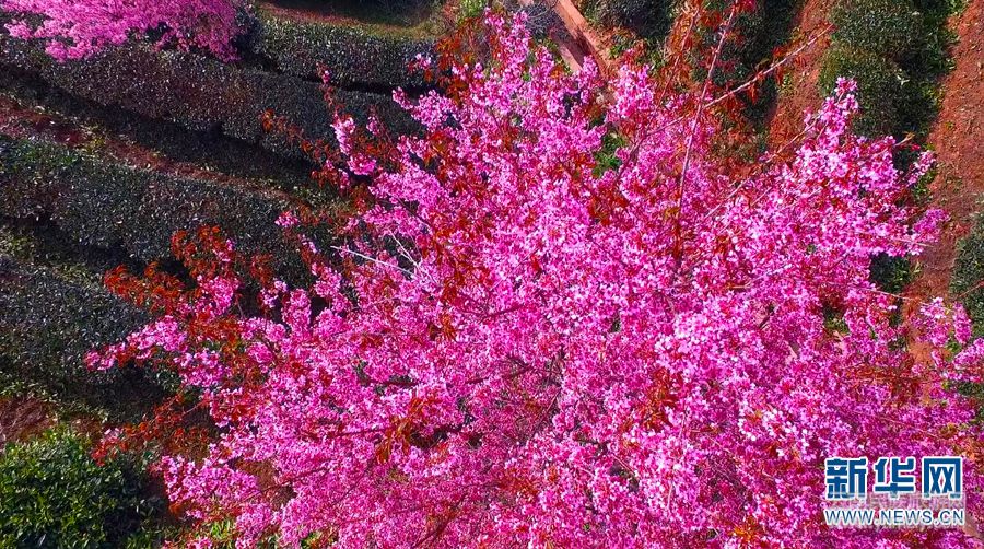 【“飞阅”中国】航拍普洱茶山樱花盛开 感受花香、茶香交-图说天下-云南民族旅游网