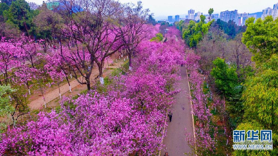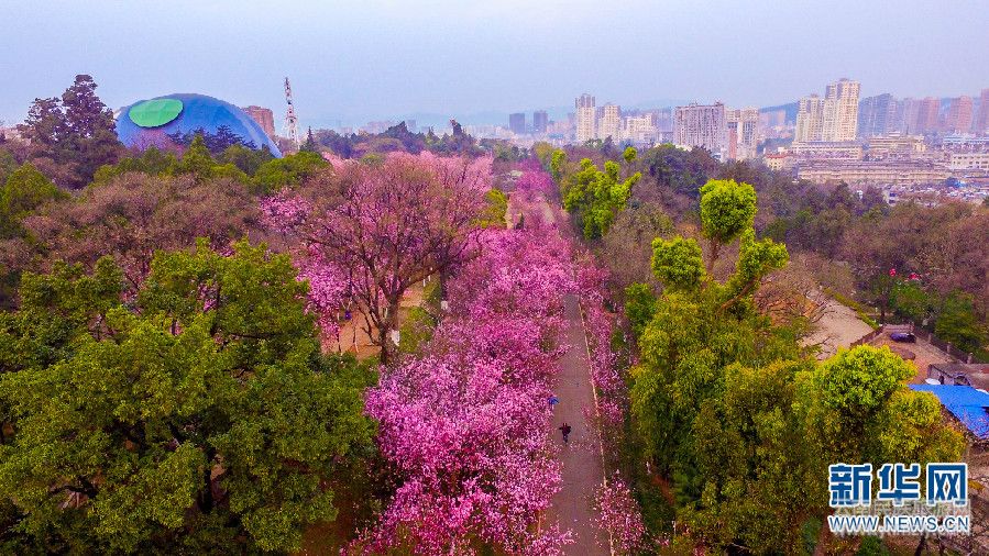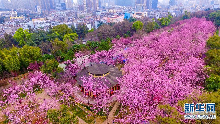 近日,云南昆明圆通山公园樱花竞相绽放。三月春光正好,樱花开放灿若云霞,园内不仅有云南樱花、日本樱花等正在开放,多株海棠也同期盛开,与樱花相映成趣。(胡安琪 文 潘越、胡安琪 图)
