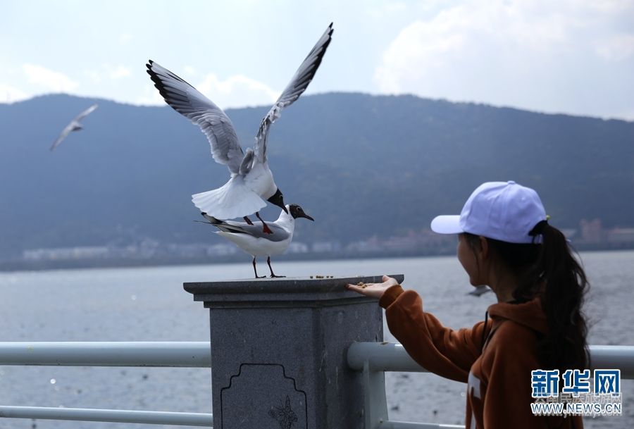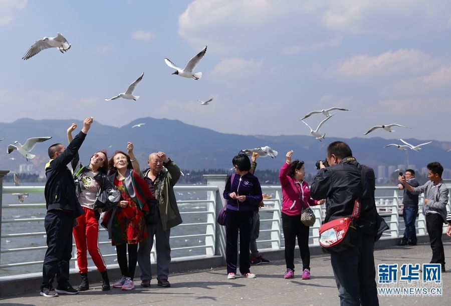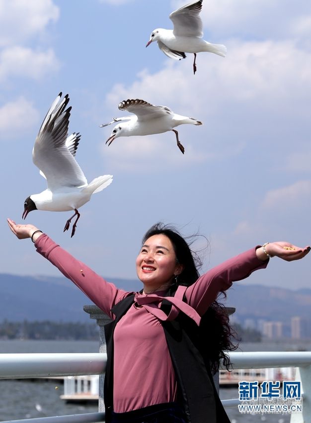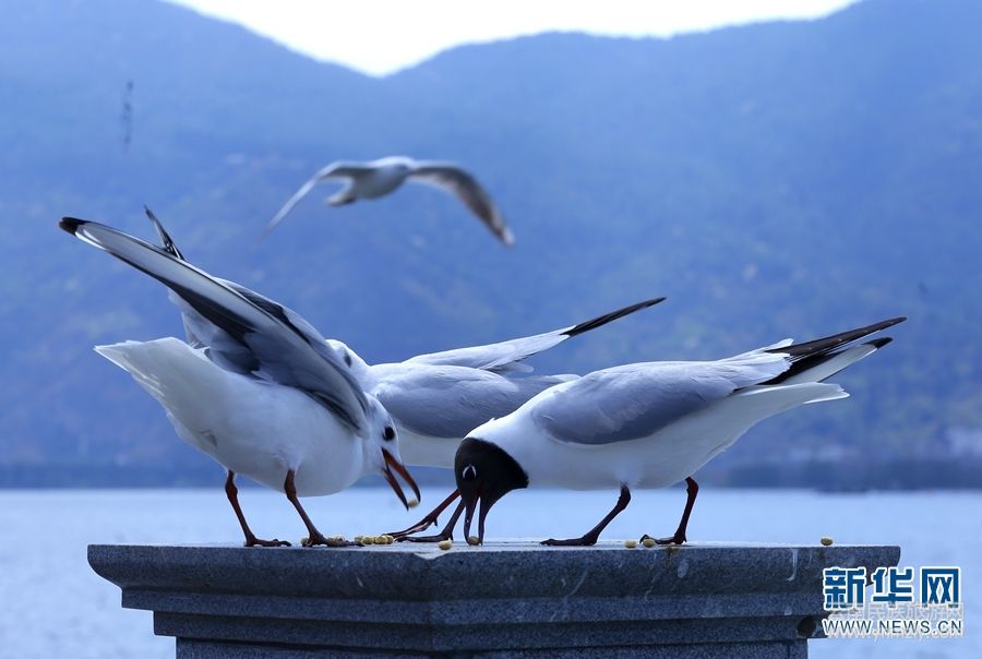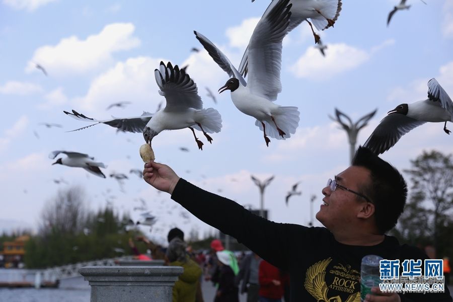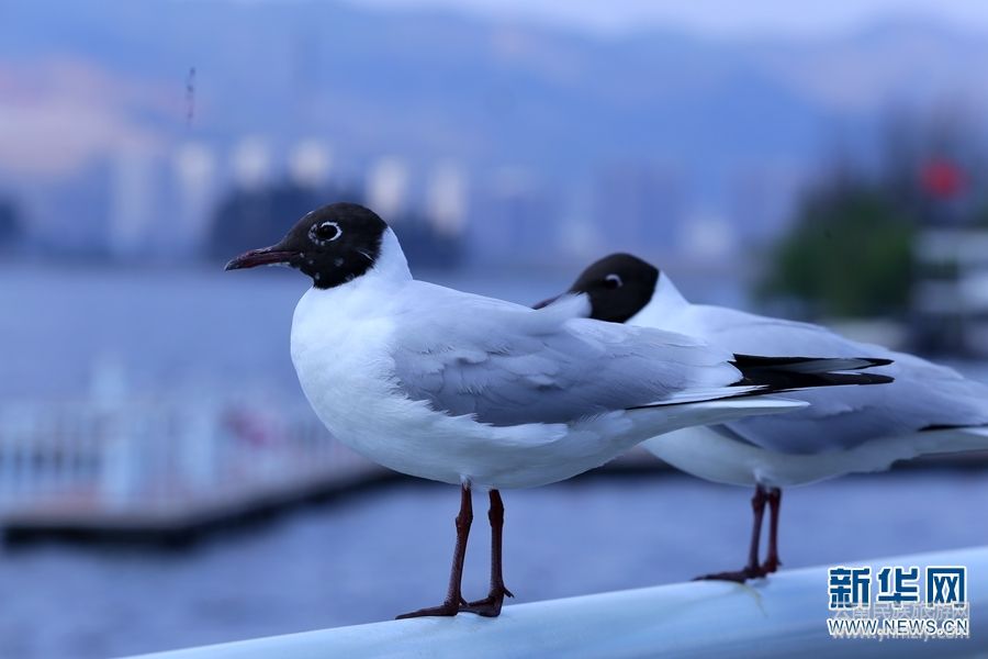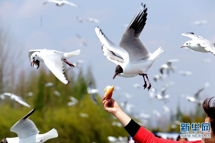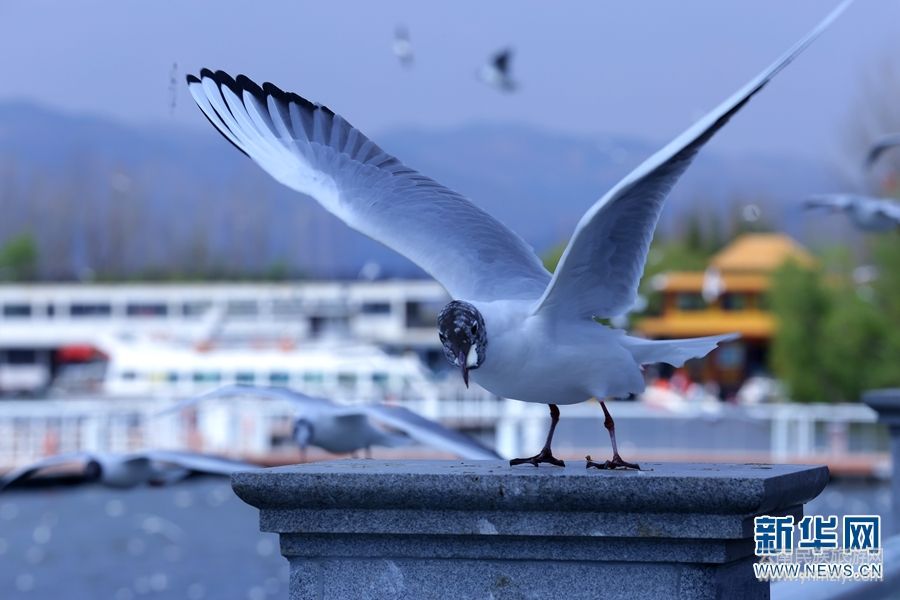近日,昆明不少红嘴鸥的头部都由白色变成了黑色,鸟类专家们将之戏称为“婚纱”,说明它们已经到了繁殖期,即将离开昆明,迁往西伯利亚等繁殖地“生儿育女”。(新华网 念新洪 摄)