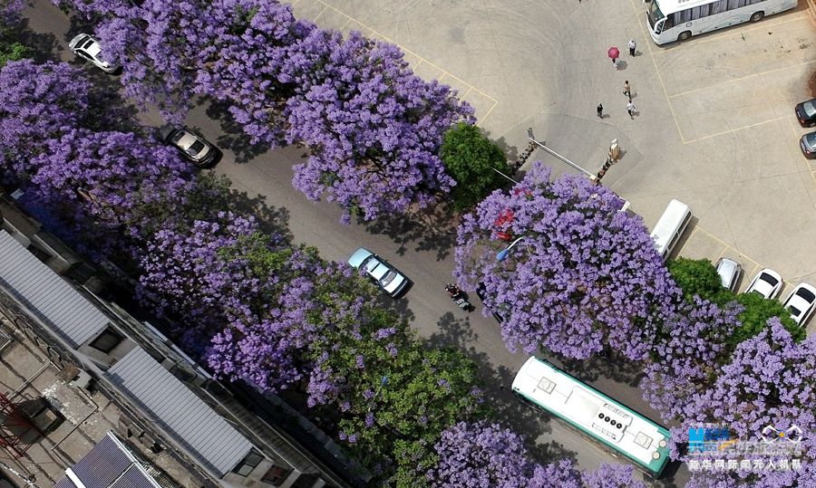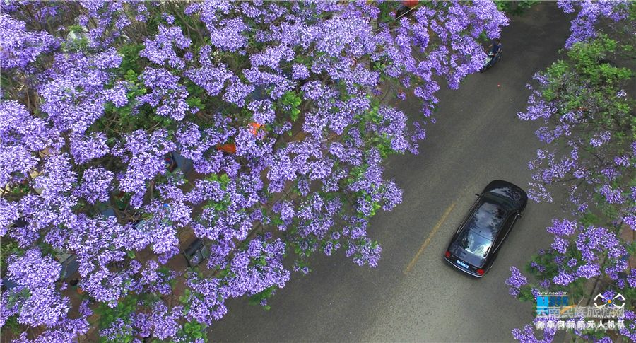 航拍昆明蓝花楹大道 “蓝色花海”惹人醉-图说天下-云南民族旅游网