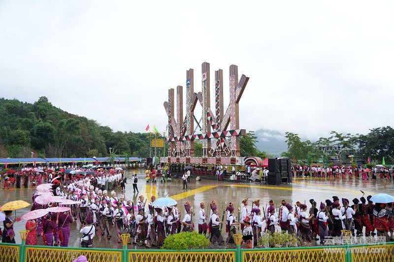 云南盈江:万人共舞庆华诞 石榴花开一家亲2025/10/03