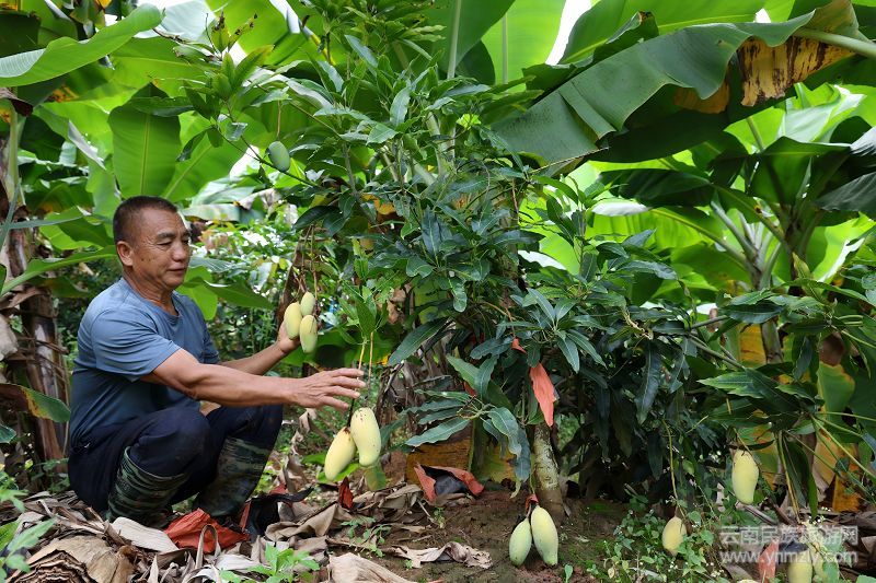 陈文海的“丰收账”,源于他探索的“蕉园 ”立体套种模式。几年前,他从外地学到先进农业技术后返乡种香蕉,从去年的20亩扩种到今年的100亩,还在香蕉树下“做文章”——根据不同作物生长习性,套种反季芒果、大豆、玉米,形成“上有香蕉、中有芒果、下有豆薯”的种植格局,让一亩土地实现“一季多收、一园多产”。