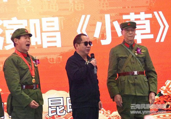 交流活动在收复和坚守老山前线五座大山的8位连长与史光柱一同唱响战士们最爱的歌曲《小草》歌声中圆满结束。