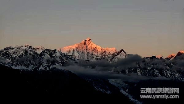 梅里的震撼,始于清晨的“日照金山”。晨起的晴朗黎明,6740米的卡瓦格博峰率先被朝阳染成金红,光芒次第蔓延至十三座雪峰,在黑暗中完成一场仅20分钟的神圣仪式。藏民说,能目睹此景的人,将获得神山整年的祝福,这份稍纵即逝的美好,让每个守候者都屏息凝神,在光影变幻中忘却尘世喧嚣。无论是雾浓顶观景台的白塔映雪峰,还是飞来寺的全景视角,都是定格这份震撼的绝佳位置,连《恰好是少年》中的少年们也为之驻足惊叹。