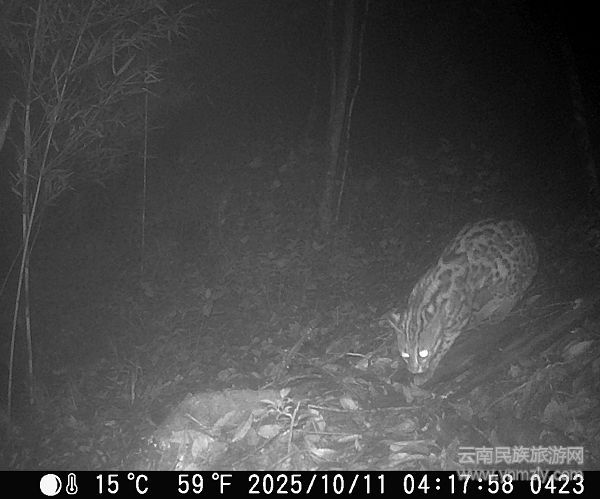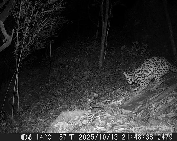 本网讯:前些时,安装于云南省保山市昌宁澜沧江县级自然保护区老君山片区的红外相机,完整捕捉到一只成年国家二级保护野生动物豹猫标记“领地”的全过程。这段珍贵影像为科研人员研究豹猫的行为习性、领地意识等提供了关键实证资料。